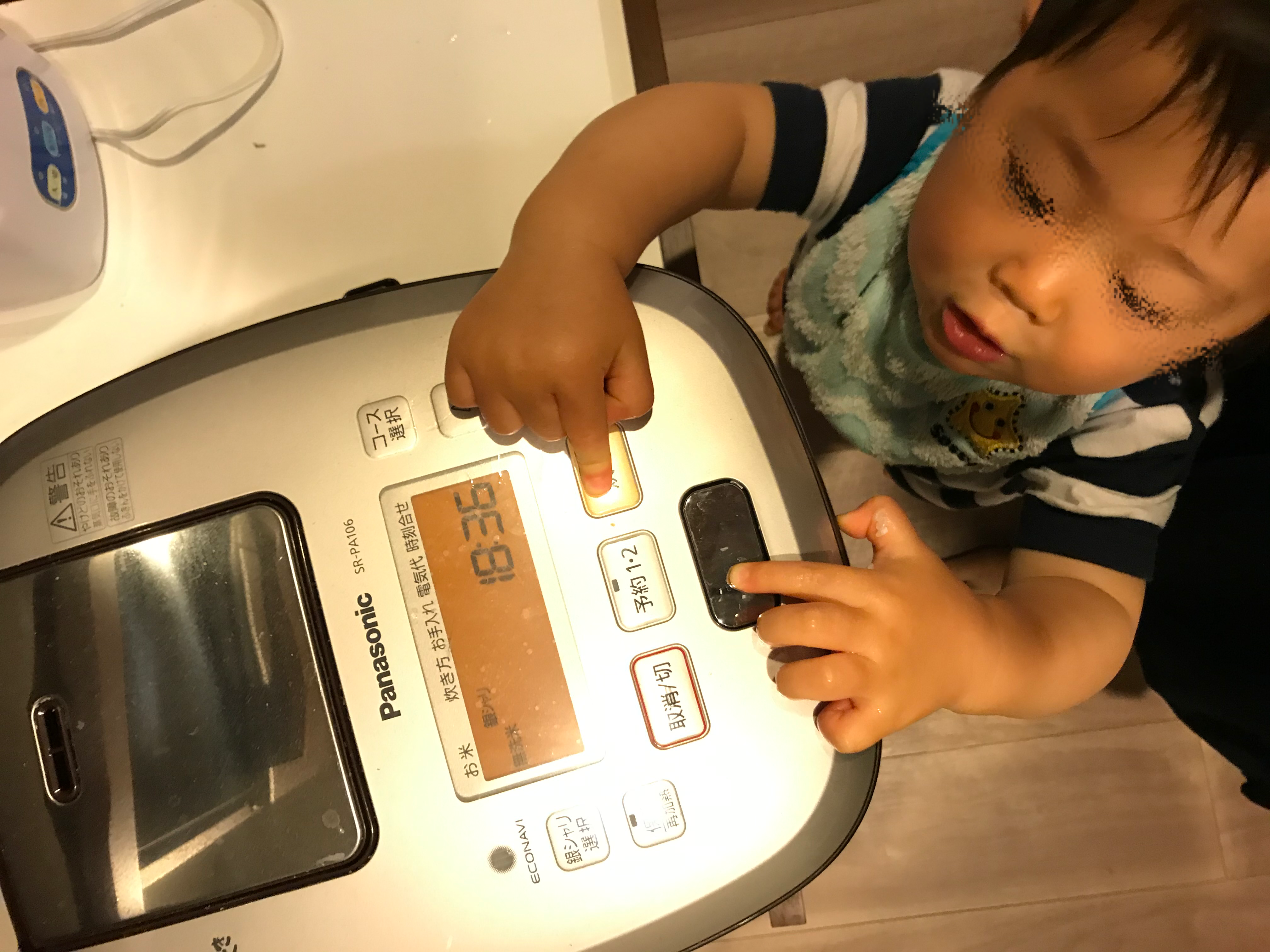 最後に炊飯器に内窯をセットしてピッとボタンを押したら終了。大人から見るととても簡単な作業ですが、1歳代のこどもにとっては大仕事。終わった時にはとても満足気な表情を見ることができるかと思います。