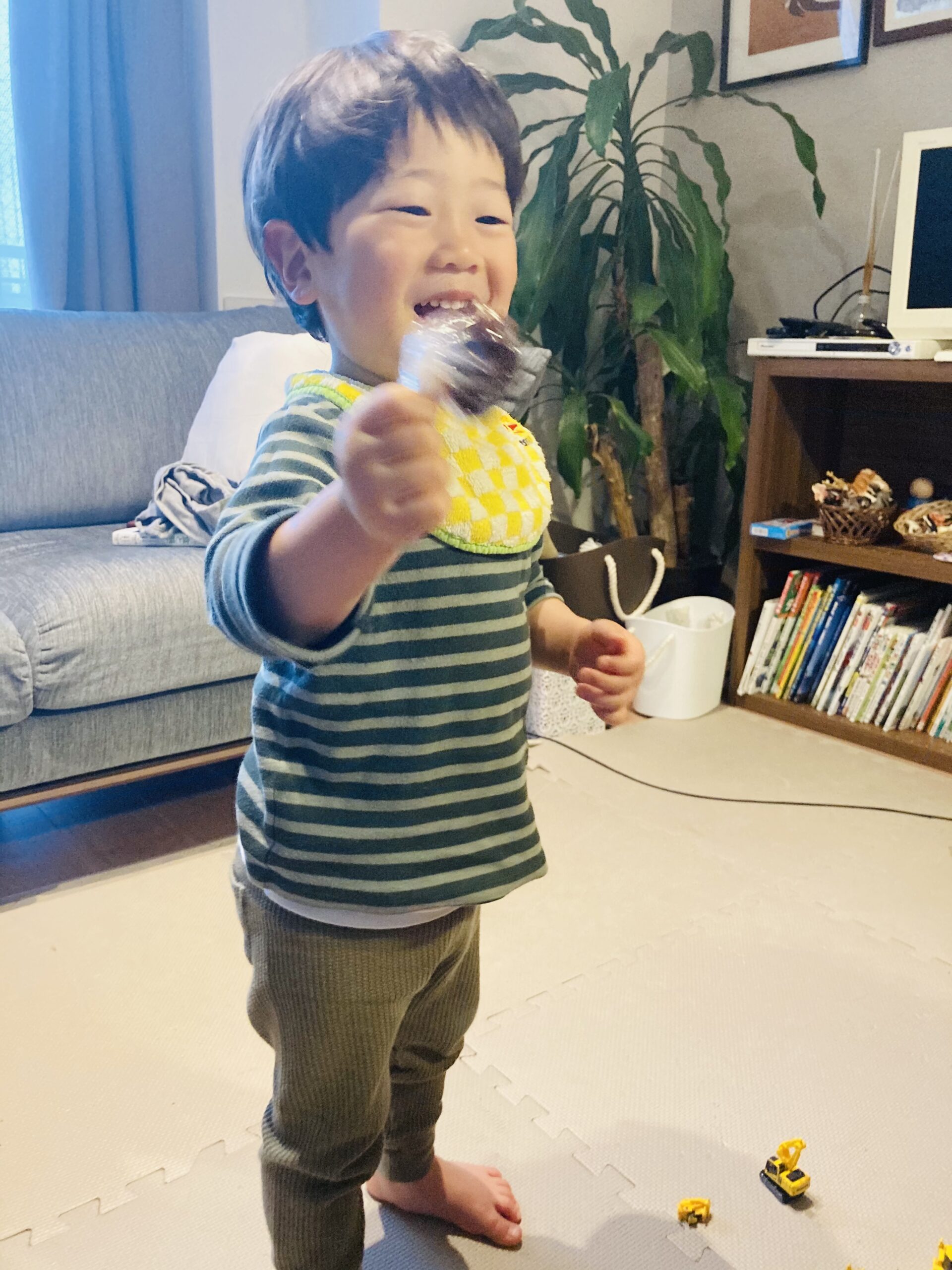 さて、今回のお餅をこねる作業、我が家の息子の反応はどうだったかというと。。