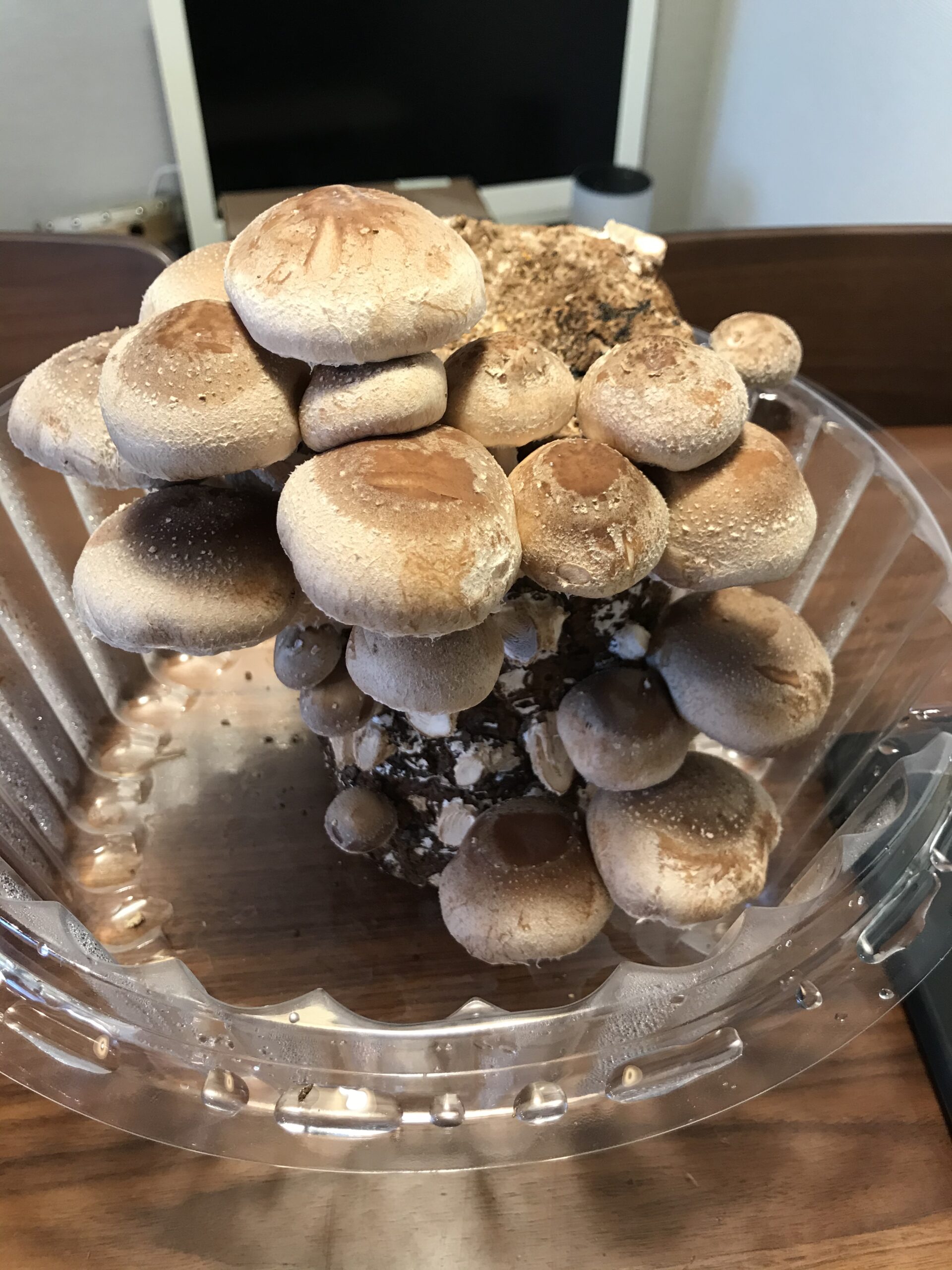ところで、きのこのお味噌汁に入れるキノコですが、我が家では、しいたけ栽培キットで育てたしいたけを収穫して、キノコのお味噌汁を作ったこともあります。