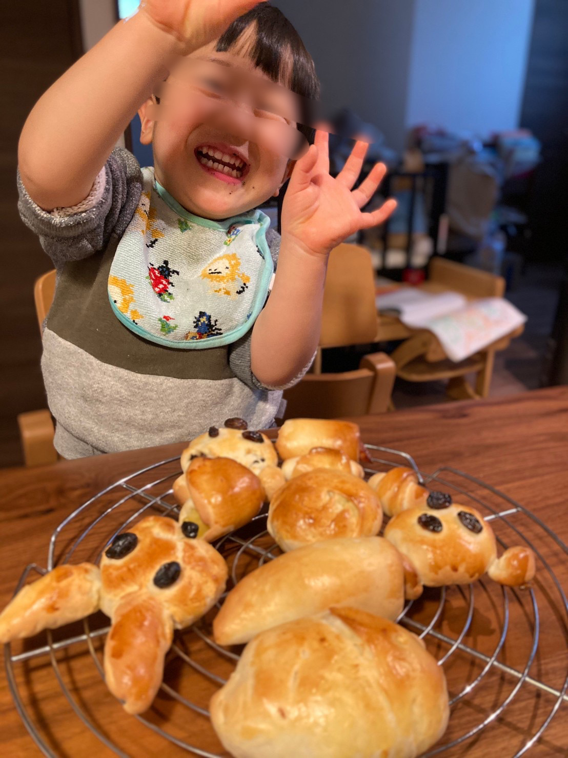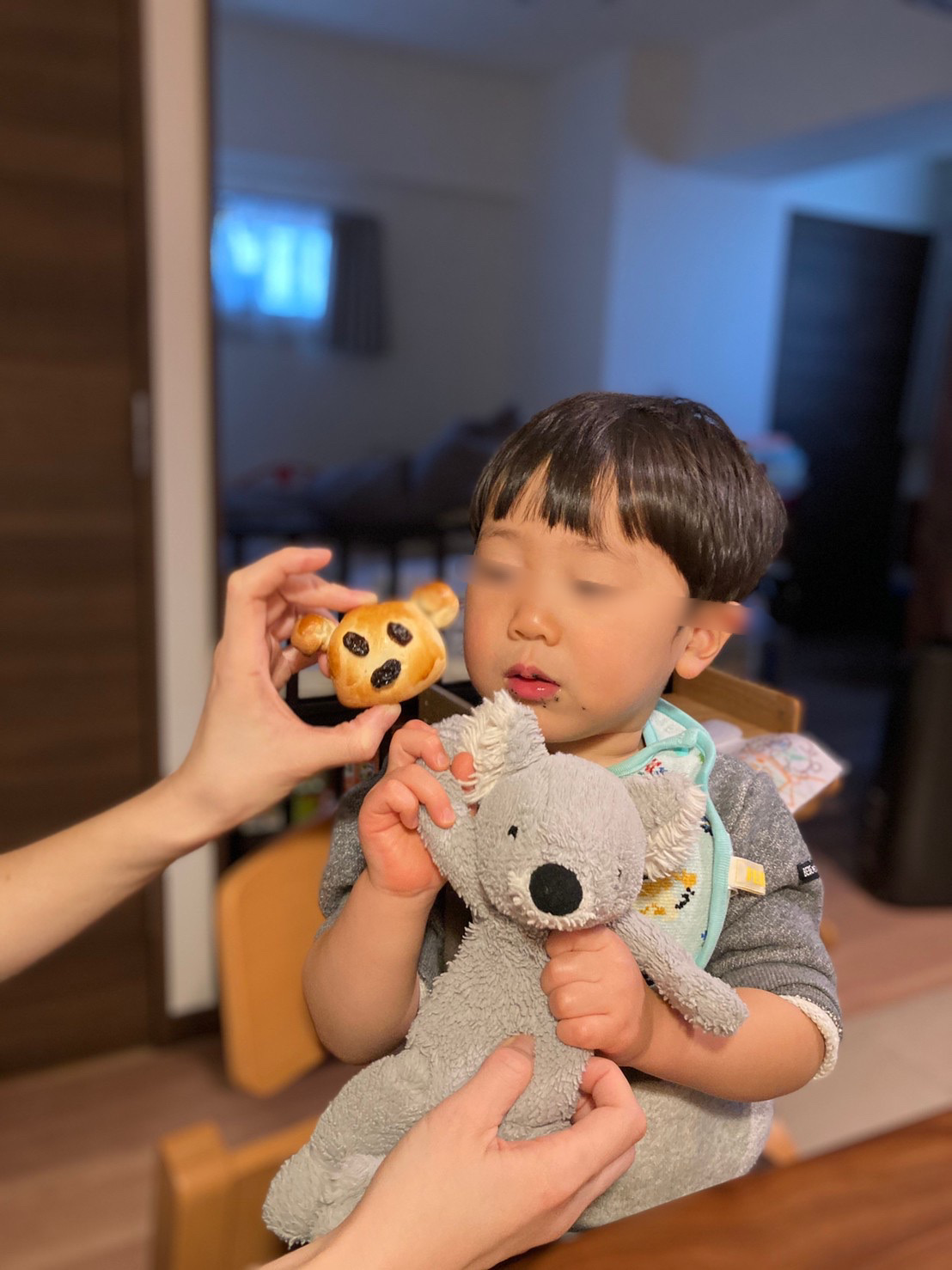 もっちりと手触りのいいパンの生地は、大人でも触っていて気持ちがいいですよね。我が家の息子(2歳0か月)も大喜びで触っていました。