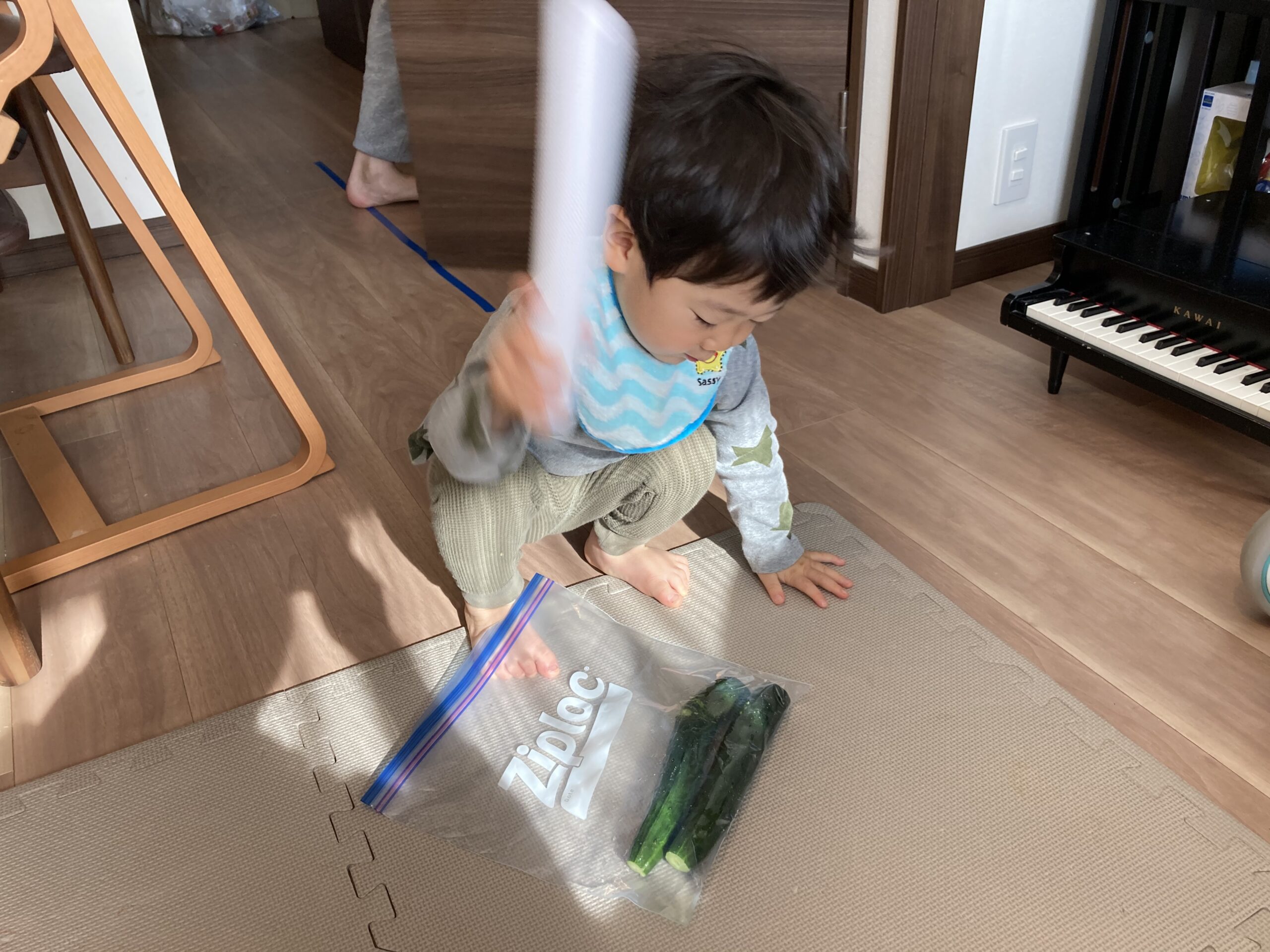 そんなたたくことが大好きなお子さんにお勧めなのがきゅうりを叩くお手伝い。
