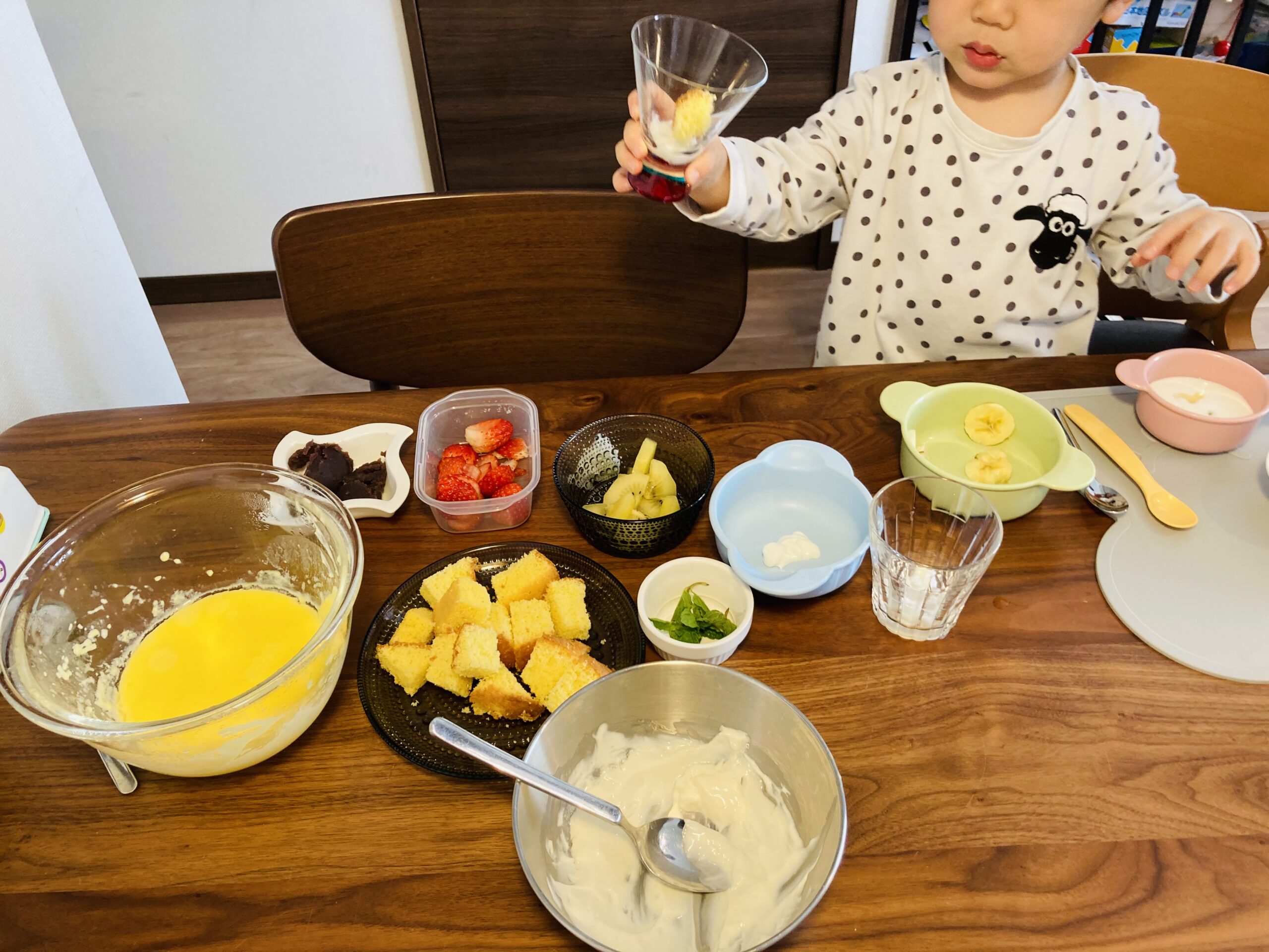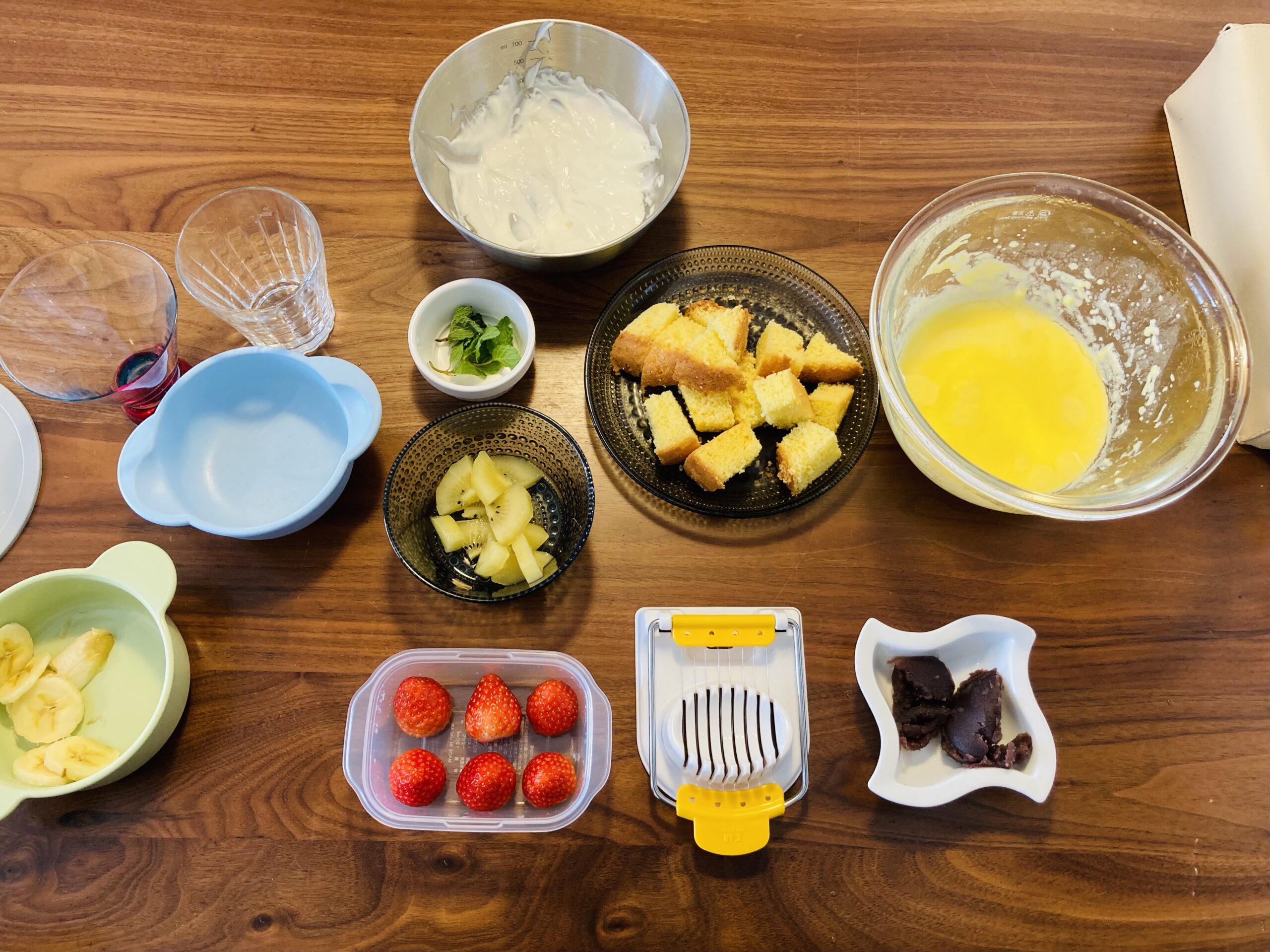 今回は、2歳頃から子どもと一緒に楽しむことができるトライフル作りを紹介します。